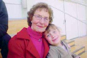 Nina Ester Pedersen, der her ses med ét af sine højt elskede børnebørn, døde i en alder af 83 år den 1. november 2007 på slægtsgården »Damgaard« i Homå.