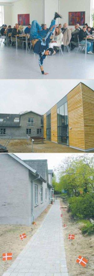En af eleverne gav en flot opvisning i hip-hop-dans, da Grenaa Produktionsskole indviede sin nye kantine onsdag i sidste uge. -- Tilbygningen til Grenaa Produktionsskole er tegnet af arkitektfirmaet Glindvad & Jeppesen. -- Hovedbygningen er blevet vandskuret i forbindelse med om- og tilbygningen på Grenaa Produktionsskole.