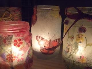 Syltetøjsglas ændret til fyrfadslys med decoupage.