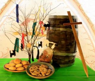 Aktiviteter for børn og deres familier på Dansk Landbrugsmuseum. Lav gammeldags fastelavnsris og vær aktiv i "Karolines køkken". - Kan du pynte dit eget fastelavnsris med kulørte stofbånd, blomster af silkepapir, farvede æggeskaller, sorte katte og den hvide stork med svøbelsebarnet i næbbet på hæderspladsen - i toppen af riset. Det koster 10 kr. at pynte et gammeldags fastelavnsris.