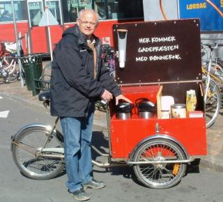 Den rullende trehjulede varmestue i Odense.