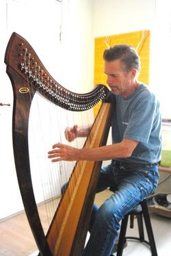 Nogle af indslagene vil være rene soloharpe indslag, mens sangene vil blive fremført af Mia, Michael og Søren, suppleret med et diskret harpe- og harmonika akkompagnement. Den keltiske harpens tidligste historie i Europa er mangelfuldt udforsket. Tre af de ældste autentiske harper er såkaldte cláirseachs fra de britiske øer, én fra Irland og to fra Skotland. Disse tre harper blev bygget i 1400-tallet, antagelig i Argyll i Skotland. Bronzestrengene på de historiske cláirseach-harper er spændt over en massiv resonanskasse, som oftest er udskåret af et enkelt stykke piletræ. Til resonanskassen er der fæstet en forstærket, krum bøjle. Halsen er gerne ornamenteret med udskæringer og brede messingbånd. Instrumentet blev i begyndelsen af 1800-tallet mange steder afløst af klaveret, som holdt sit indtog i mange stuer, og harpen har først i nyere tid fået en renæssance med den stigende interesse for autentisk folkemusik de seneste 40-50 år.Strengene er i dag oftest af tarm eller nylon, og harpernes størrelser varierer en del, men er væsentlig mindre end de koncertharper, som kendes fra symfoniorkestrene. Den irske harpe har været et nationalt symbol for Irland siden middelalderen. Den omtales også som Brian Borus harpe, (som har 1000-års jubilæum i 2014) Den blev brugt på seglet til Den irske fristat (1921-37) og bliver også brugt på nationalvåbnet for Republikken Irland. Derudover finder man den på de irske 5-euromønter og på etiketten til Guiness, - den berømte mørke øl. I perioder har harpen været forbudt, da den symboliserede modstanden mod det britiske overherredømme på øen. Ikke desto mindre har den været medbragt på korstogene til Jerusalem i den tidlige middelalder, hvor den blev brugt til at akkompagnere de gammeltestamentlige salmer, med tydelig henvisning til hyrdedrengen David, som spillede harpe for kong Saul. Så det giver god mening at høre harpens toner i kirkerummet, selvom repertoiret ikke vil være Davids salmer denne aften.