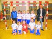 I midten ses Kvik/Ramtens Pige Puslinge-hold, der har fået nye spilledragter af Dagli’ Brugsen i Ørum.