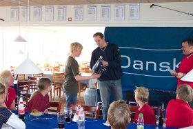 Lars Glerup, Danske Bank overrækker førstepræmien til Christian Henriksen fra Grenaa Golfklub. Foto: Hanne V. Jensen
