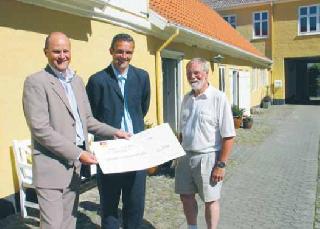 Direktøren for BG Bank i Grenaa, Bruno Kristensen (billedet t. v.) overrækker her en check pÃ¥ 5.000 kroner til formanden for Grenaa Bevaringsforening, Hans Sandgren Jakobsen. BG Bank er nemlig sponsoren bag bevarings- foreningens Ã¥rlige præmiering af bygningsejere, der passer rigtig godt pÃ¥ Grenaa’s kulturarv i form af nænsom og respektfuld bygnings-renovering og -vedligeholdelse. Temaet for dette Ã¥rs præmieuddeling, der foregik den 21. marts, var Grenaa’s gÃ¥rdmiljøer.