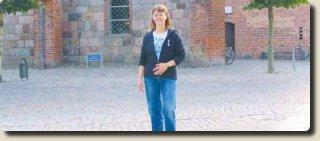 Conny Stoffer fra Det Gyldne Krus foran pladsen på Torvet i Grenaa, hvor Det Globale Morgenbord