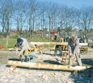 På marken bag jernalderværkstedet vil skolens træværksted være i fuld gang med udvidelsen af Djurslands Historiske Værksted.