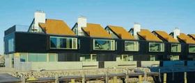 Boliger på havnefronten i Ebeltoft er klædt i beton og sort træ