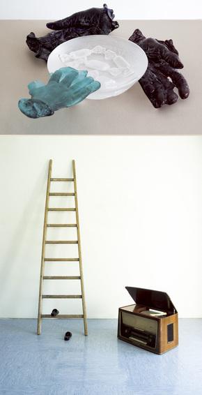 [øverst ]Heidi Von Wettstein/Rebecca Townsend/ "Memoria con Vuoti" / "Huller i hukommelsen" /45 x 45 x 10 cm [nederst] Giada Grasseli/ Lorenza Pini/ "Mi piaceva tanto" / "Jeg holdt så meget af det" /200 x 200 cm/