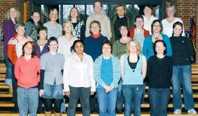 Bageste række fra venstre: Hanne Vohnsen, Tina Jensen, Helle Kjeldberg, Charlotte Alling-Dam, Stephan Williams, Gitte Schultz, Lisbeth Rasmussen og Henny I. Hattesen (underviser).
