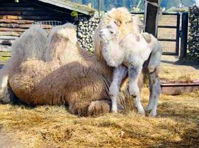 Den kun 2 dage gammel kamelhingst vænner sig til verden sammen med sin mor, kamelen Barbie i Ree Park - Ebeltoft Safari, der regner med stort rykind af gæster i maj måned.