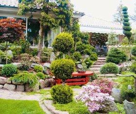 Interessen for det japanske rækker mange år tilbage. De blev begge to dybt fascineret af den ro og harmoni, de fandt i billederne af japanske haver. Som noget af det ældste i haven, ligger der et gammelt te-hus bag i haven, godt gemt bag store træer. Det blev opført for cirka 22 år siden efter de bøger, de dengang kunne få fat i. Senere blev der lavet indgang til haven gennem hovedporten. Måske Danmarks ældste japanske Toriport. For 12 år siden byggede Børge så et nyt, ægte tehus - af affaldstræ.