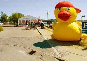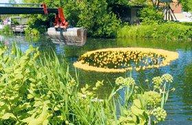 1.900 gule plastic-ænder dystede om at komme først over målstregen i dette års Rap om Kap i Grenaa.