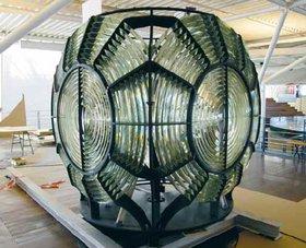 Det var ikke uden problemer at få det to tons tunge linsesystem på plads i udstillingen, der er blevet placeret på første sal. Gulvet her er ikke bygget til så stor en belastning, og det var derfor nødvendigt at svejse store H-stålprofiler fast for at øge bæreevnen.