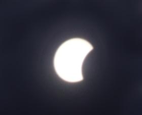 Solformørkelsen startede klokken 10:30 og klokken 11:30 var ca. 27% af solskiven dækket af månen.