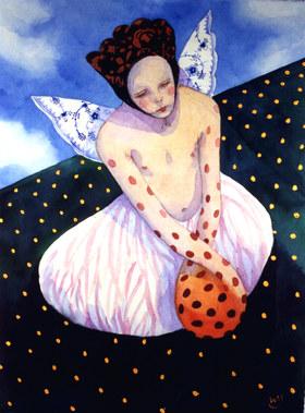 På stjernernes scene, Akvarel af  Winnie Meisler, Format: 65 cm H x 50 cm B.