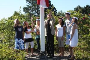 Når disse studenter er færdige bliver skolens flag hejst kl. 10.00