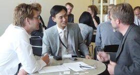 Plan for Erhvervsrettet Vidensamarbejde med Shanghai skal bane vej for flere samarbejdsmuligheder mellem virksomheder og forskningsinstitutioner fra Shanghai og Midtjylland. Foto fra en dansk/kinesisk IT workshop i Århus i maj 2009. På billedet (fra venstre): Mads Søgaard fra DTI, Mr. Zhang Yibin fra Velo i Shanghai samt Kaj Grønbæk fra Datalogisk Institut på Aarhus Universitet. (Foto: region Midt)