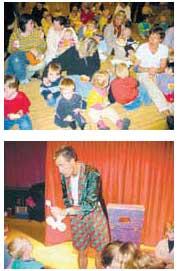 I kulturhuset blev der disket op med underholdning og spisning, og så deltog den kommunale tandpleje igen i år med en vand- og gulerodsbar. Boller var der også, og McDonalds Grenaa og »Cool« havde sørget for, at man ikke løb tør for flag og balloner. Det sidste var ikke helt ligegyldigt, eftersom underholdningen var lagt i hænderne på ballon-tryllekunstneren Jesper Grønkjær fra Århus. Han tryllede således det ene ballondyr efter det andet frem til børnene, der også var pænt fascinerede af tryllekunstnerens store hvide kanin.