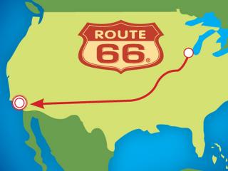 Samtidig laver de afstikkere til de oplagte og spændende besøgsmål, som ligger nær ruten. Vi høre om turen gennem staterne Illinois, Missouri, Kansas, Oklahoma, Texas, New Mexico, Arizona, Nevada og Californien. Get your kicks on Route 66!