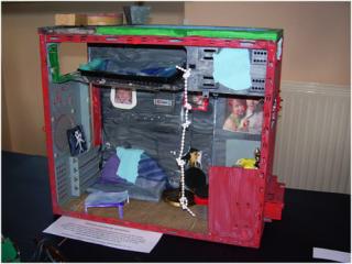 Dukkehus i kasseret computer-kabinet.