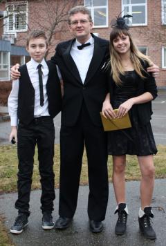 For koordineringen af fredagens uddeling af filmpriser stod værtsparret Mikkel Melgaard fra 8. A og Caroline Godrim fra 8.C på Rønde Skole. Her flankerer de projektleder for videoprojektet Haakon Rønnow Petersen fra Viden Djurs. FOTO: Mads Eriksen.