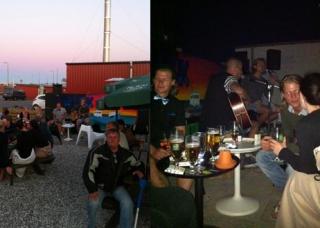 "DJ Noliou" vil underholde på terrassen. hvor man har lavet en hyggelig stemning med bla. levendene lys.