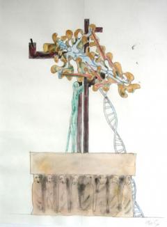 Bjørn Nørgaards skitse til altertavlen i Knebel Kirke.
