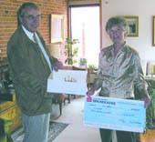 På billedet overrækker Mogens Adamsen fra Vivild og Omegns Sparekasses Grenaa Afdeling bryllupsgaven til Jytte.