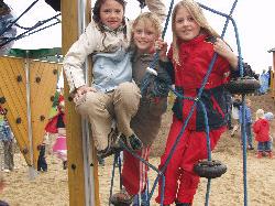 Skolelederen tog sig god tid, syntes (fra v.) Tina, Anne og Mette fra 2. A og deres kammerater, men endelig blev der talt ned, og så var det bare afsted til den nye legeplads, som er inspirereret af det nyeste nye på den pædagogiske hitliste - motorik, bevægelse og de mange intelligenser.