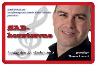 Korvenner.dk afholder sit første korstævne for SAB kor (Sopran, Alt og Bas kor) under ledelse af organist og musiker Thomas H. Lennert og med musik skrevet af og arrangeret af denne. Stævnet henvender sig til dig som korsanger og som korleder - der bliver lidt til brug i kirken og noget til forsamlingshuset - både klassisk og rytmisk til AlleHelgen, Jul og Kyndelmisse.