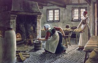 Kom og oplev bagning som i gamle dage. - Dengang lagde man dejen aftenen før den store mÃ¥nedlige bagedag, sÃ¥ den kunne ”løfte sig” i løbet af natten. Dejen kaldte man dengang ”bægt”. Ved morgengry æltede man endnu en gang dejen i det store dejtrug, inden den blev sat i ovnen. Brødet blev opbevaret pÃ¥ en brødhæk eller i en pose hængende fra loftsbjælken. Mug og skadedyr konkurrerede med husstandens mennesker om det vigtige brød. Var der mug pÃ¥ brødet - ja, sÃ¥ tog man en ekstra slurk øl, sÃ¥ støvet blev skyllet ned!