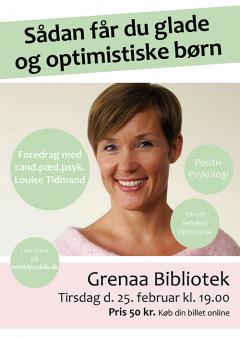 Hør foredraget "Sådan får du glade og optimistiske børn" på Grenaa Bibliotek tirsdag d. 25/2 kl. 19