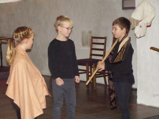 Minikonfirmander opfører skuespil i Vejlby Kirke i 2012.