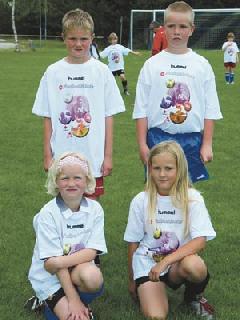 Af de frivillige hjælpere var 3 på køkkenholdet. Dorthe Vand fortæller, at det også skulle være sundt at komme på fodboldskolen, hvorfor pølser og pomfrittes ikke var på menuen. Til gengæld var der tilbud om madpakker bestående af boller med sundt pålæg og grønt. Ca. en fjerdedel af eleverne havde valgt dette madpakketilbud, medens de øvrige havde madpakker med hjemmefra. Kathrine på 8 år spiller til dagligt på Miniput Piger i Grenaa IF, som forsvarsspiller, hvor hun synes hun er god, men man kan jo sagtens blive bedre. Pernille spiller til daglig venstre fløj på Miniput Drenge iÅstrup/Hammelev, og hun bruger tiden indtil hun vist nok skal med sine forældre på campingferie. Morten spiller miniput-A-rækken i Åstrup/Hammelev som forsvarsspiller, og han er stolt af at hans hold endte på en 3 plads i sidste sæson. Mads fra Grenaa IF er målmand på Miniput B-rækkeholdet, der i sidste sæson endte på en flot 2. plads. Han er glad for den specielle målmandstræning, og selvom han er en god målmand, var det rart og lære nye trick.