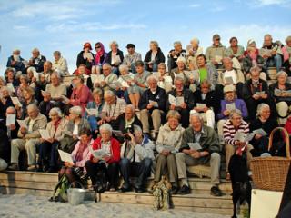 Velkommen til herlig fællessang på "Horisonten" i Ebeltoft. (Ved Glasmuseet & Fregatten Jylland). Turistforeningen for Ebeltoft og Mols inviterer hermed turister og lokale beboere til at synge solen ned over Nationalpark Mols Bjerge. Arrangementet afholdes i samarbejde med lokale korsangere og Ebeltoft Harmonikaklub, der vil danne klangbund for fællessangene. Alle aftner indeholder en anekdote, måske en sang eller anden form for underholdende indslag. Turistforeningen har trykt et lille sanghæfte med dejlige sange fra højskolesangbogen.
