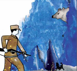 Et dukkeeventyr om mod, handlekraft og kammeratskab. Forbandelsen er blevet til sandhed og prinsessen bortført af en snestorm midt i den lyse sommer. Soldaten slår følgeskab med kaptajnen og løjtnanten og sammen drager de ud for at finde prinsessen. På en farefuld færd, er det bedre at være tre end at være alene. Men hvem kan man stole på, når man skal ind i Det Blå Bjerg og stå ansigt til ansigt med de farer, der lurer. Og hvor snu kan man være, før man bliver for snu ? - Der er premiere søndag d. 1. marts kl. 15.00 på Rønde Gymnasium. Stykket opføres igen samme sted mandag d. 2/3 kl. 9.30 og igen kl. 11.00. Tirsdag d. 3. marts opføres det i Kulturministeriet i Ebeltoft kl. 9.30 og igen kl. 11.00. Sidste mulighed er onsdag d. 4. marts kl. 9.30 og igen kl. 11.00 i Kom-Bi Bio i Hornslet.