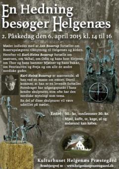 Foredrag med Jan og Karl-Heinz Boserup. Jan Boserup indleder med at fortælle om Boserup slægtens tilknytning til Helgenæs og kirken. Herefter fortæller Karl-Heinz Boserup om asatroen og de nordiske guder. Karl-Heinz Boserup er asatroende. Han vil fortælle om Valhal, om Odin og hans hest Slejpner, om Thor og hans hammer Mjølner og hans bukke, om Fenrisulven og Freja og om alle de andre nordiske guder. Karl-Heinz er en meget levende fortæller. Foredraget har udgangspunkt i hans kendte skulpturer, som ofte har den nordiske mytologi som tema. En del af skulpturerne vil være udstillede i Kulturhuset.