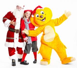 Julemanden, juledamen og Jungledyret Hugo.