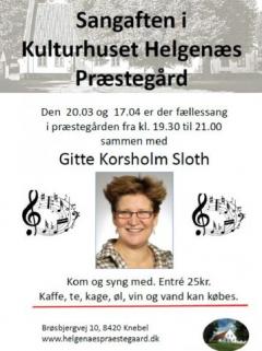 Sangaften i Kulturhuset Helgenæs Præstegård mandag d. 20/3 kl. 19.30 til 21