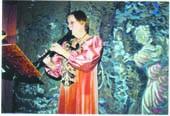 Annette Friisholm spiller renæssance-musik på sin blokfløjte i forbindelse med et arrangement på den djurslandske herregård, Skaføgård