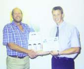 På billedet ses aktionær nr. 10.000, Tom Kvist Jensen fra Lystrup, der får overrakt 5 Djurslands Bank aktier samt 3 flasker rødvin af kunderådgiver Lars S. Henning fra Djurslands Bank, Lystrup afdeling.