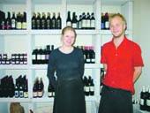 Jakob Vinkler og Chashymie Høher har fået en fin start med butikken SMAG på Østergade i Grenaa. Her ses parret ved butikkens udvalg af kvalitets-vine.