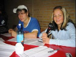 Kenneth “Hitman” Skytte og Stine Dichmann fra 9. klasse på Marienhoffskolen havde lagt turneringsplanen og afviklede med stor sikkerhed dagens store stævneprogram.