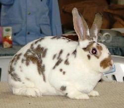 Dernæst er der en flok Rex dalmatiner, castor som de officielt hedder, en plysset kanin med pletter i brunt, som få en til at tænke på en dalmatiner hund. Disse kaniner findes her i landet kun hos denne ene opdrætter, som selv har fremavlet dem. Faktisk er den så sjælden, at da opdrætteren for et par år siden ville købe nyt blod på den tyske landsudstilling med mange tusinde dyr, da var der ikke en eneste udstillet, så hun måtte vende hjem med uforrettet sag.