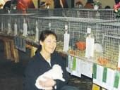 Kaninerne blev bedømt lørdag formiddag af Benny Garly, Rødkærsbro, og Jens Jørgen Nørgaard, Struer og der var stor tilfredshed med kvaliteten af de udstillede dyr. Vinterens milde fugtige vejr er ellers ikke det kaninfolk ønsker til deres udstillingskaniner. En god frostvejrsperiode - bare med et par graders frost - giver pelsene det allersidste finish, men det gik alligevel. På billedet ses Inger Nielsen, Grenaa med 2,2, hvid Dværg Vædder-kanin, der toppede ærespræmielisten med 379,5 point