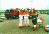 Passagerne om bord - og de meget livagtigt sminkede »kvæstede« - var frivillige fra civilforsvaret, hjemmeværnet og andre, som ydede en meget realistisk indsats om bord. Blandt andet ved som chokerede at forsvinde fra de påbudte sikkerheds-områder, hvor de skulle have opholdt sig.