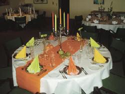 Der blev også budt på lidt mundgodt i form af diverse smagsprøver og i konfirmand-genren var der endvidere udstilling ved Viggo Jensen Cykler foruden præsentation af konfirmandmodetøj fra Modecentret og Mr. Rasmus. Desuden udstillede hotellet selv 15 forskellige blomster-dekorerede selskabsborde i forskellige temaer: Guldbryllup, sølvbryllup. konfirmation, barnedåb med videre. Herstående billeder viser to af de flot pyntede selskabsborde.