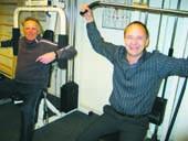 Halinspektør Jan Jensen og formanden for Nørre Djurs Hallen i Glesborg, Niels Ole Svit, ses her i det motionsrum, som hallen fik lavet for et år siden i samarbejde med Nørre Djurs HK.