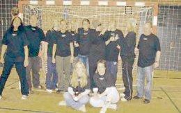 Så glade var spillere, træner og holdleder, da Åstrup/Hammelev Håndbolds damer havde sikret sig oprykning til Jyllandsserien forrige lørdag på udebane mod Tarm Foersom.
